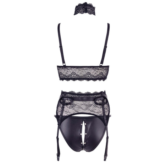 3-teiliges Set mit Hebe-BH, String und Strapsgurt