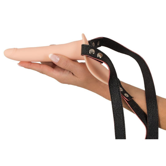 Hohler Naturdildo mit Leder Harness, Hoden frei