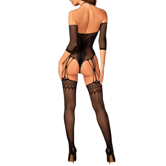 Bodystocking mit offenem Schritt und Netzstrümpfen