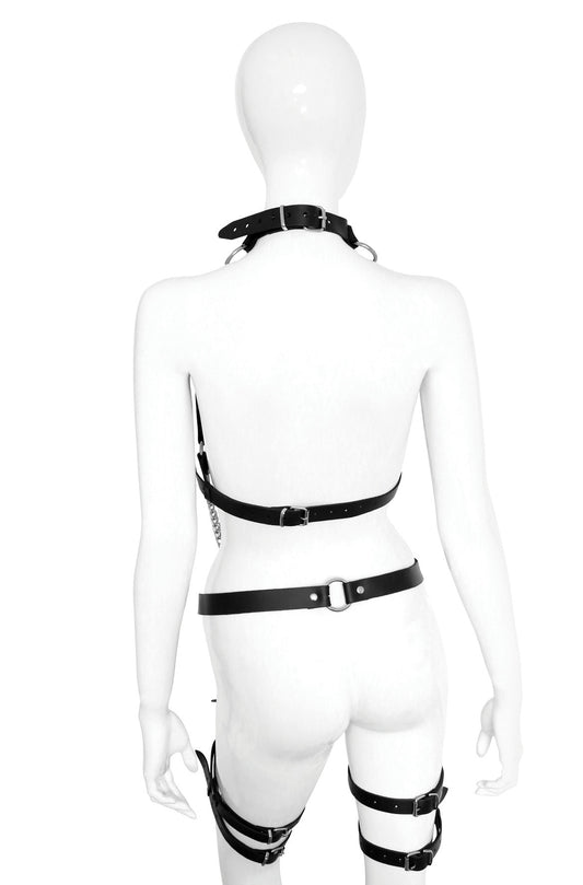 Bald wieder daLeder-BH mit Harness und Fesseln