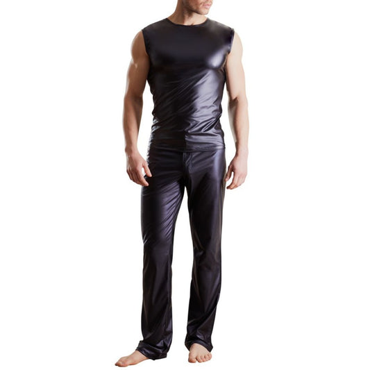 Wetlook-Strapshemd mit Halsband plus Tanga, S/M - SALE