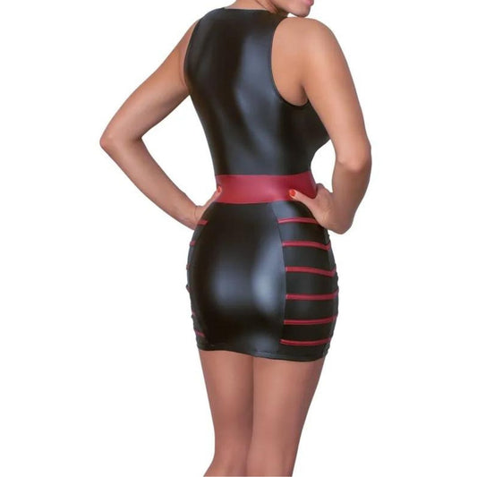 Kleid im Mattlook mit rotem Tailleneinsatz