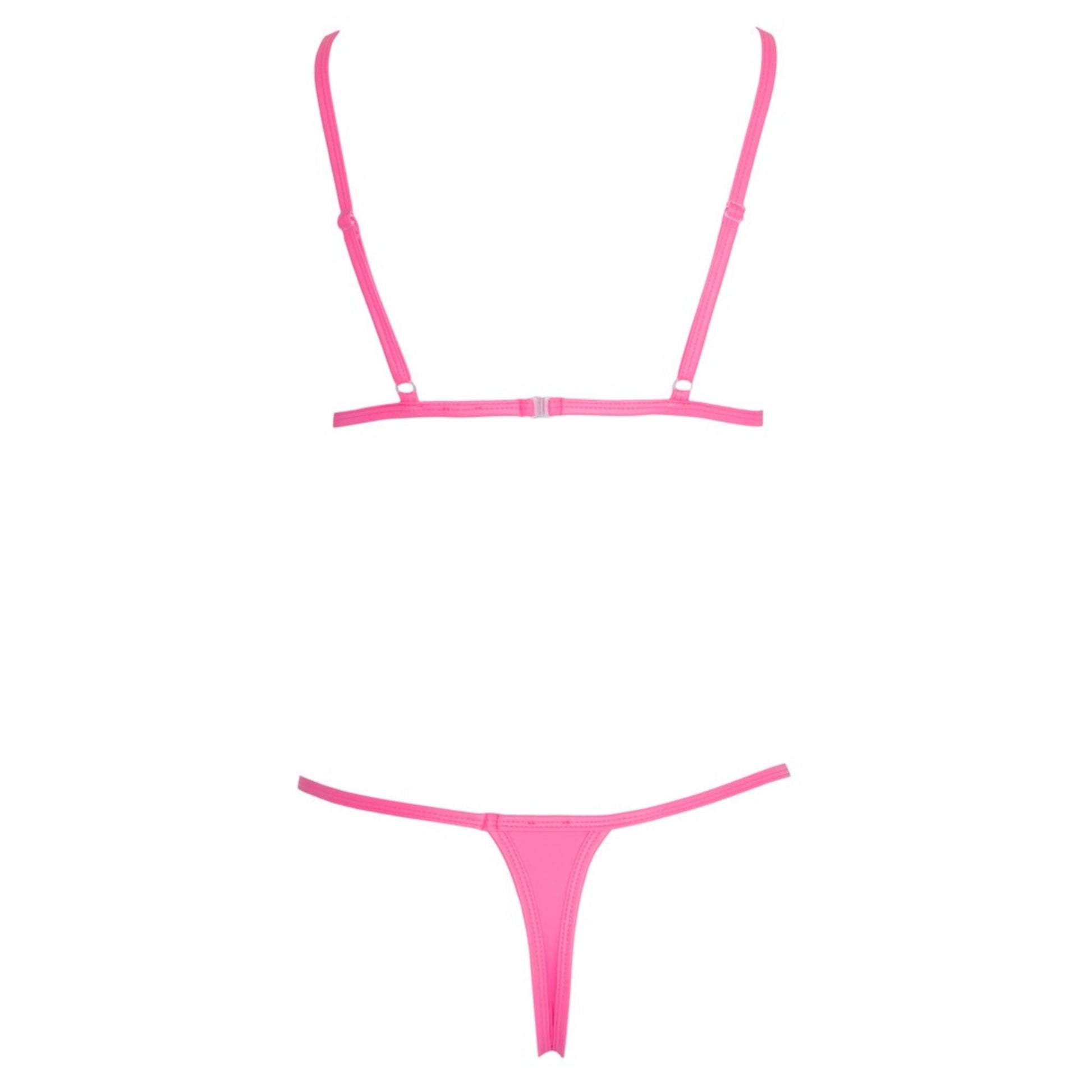 Bikini von Cottelli LINGERIE im auffällig neonpinkfarbenen Mattglanz. BH-Top mit abgenähten Cups und Clipverschluss im Rücken, Träger für perfekte Passform verstellbar. Klassischer Riostring mit schmalem Bund. Das weiche elastische Material sorgt für optimalen Sitz und hohen Tragekomfort beim Baden und Sonnen.