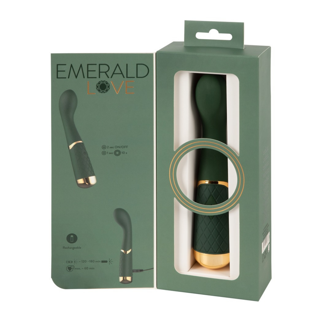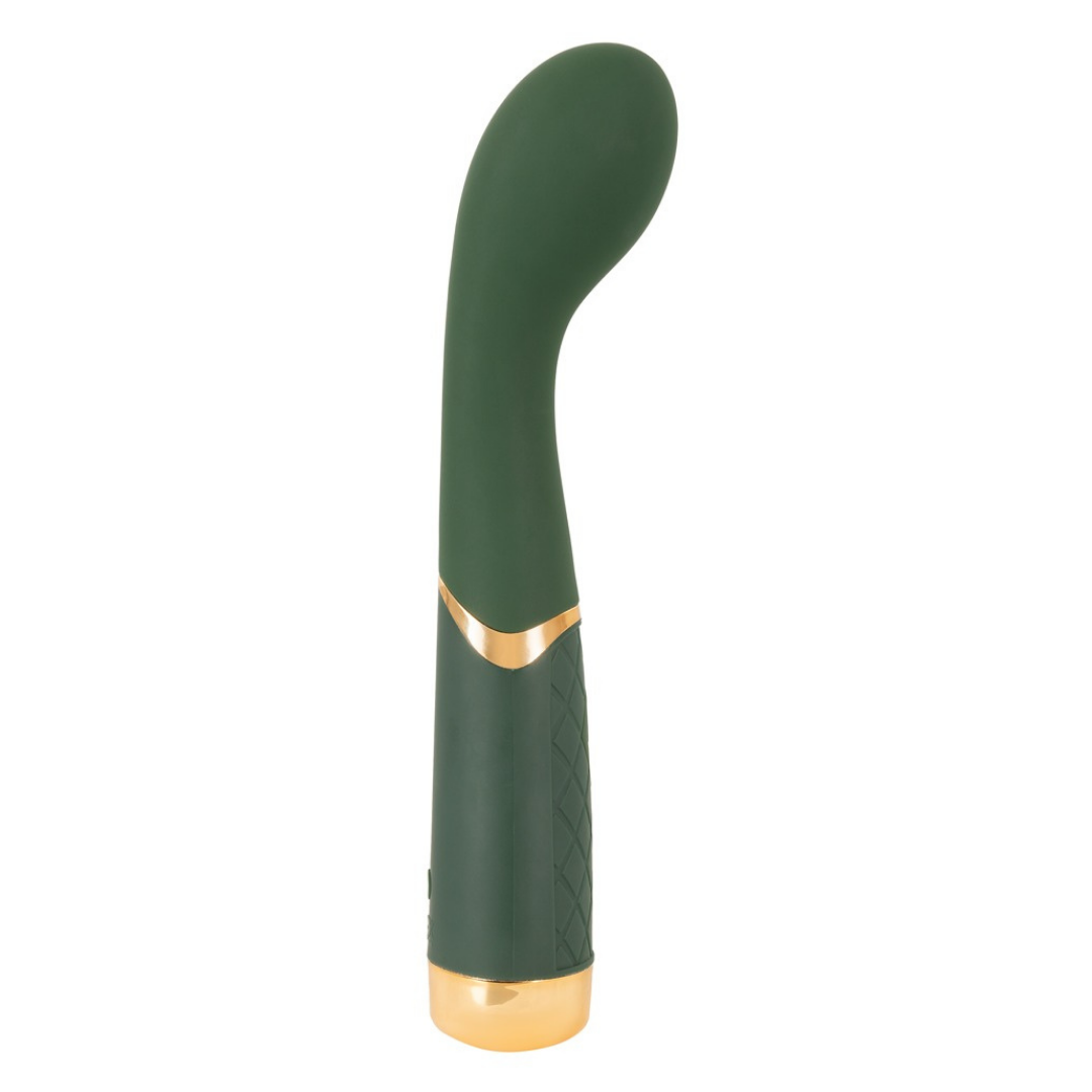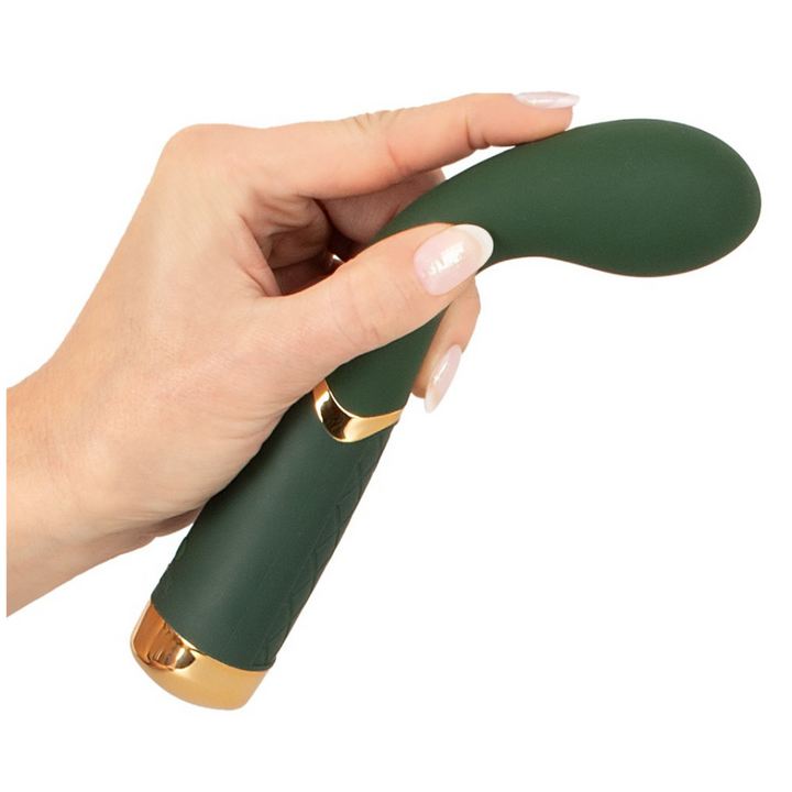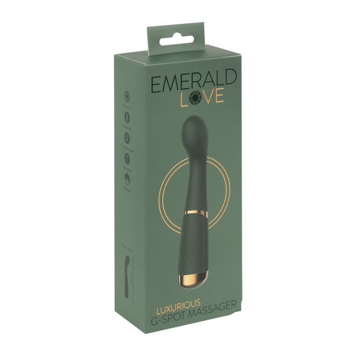 Der Luxurious G-Spot Massager sieht mit seinem smaragdgrünen Design und den goldfarbenen Elementen besonders edel aus und ist ein unglaublich handlicher und einfach zu bedienender Vibrator. Mit ihm kann jede Frau ihren magischen Lustpunkt finden und gezielt stimulieren. Und auch die Suche nach seinem analen P-Punkt kann mit diesem Vibrator Erfolg haben. Mit seinem ideal gebogenen Design und seinem beweglichen Massagekopf wird das Suchen, Finden und gezielte Stimulieren zum Hochgenuss. 10 Vibrationsmodi sorgen dabei für aufregende, punktgenaue Stimulationen und sind einfach per Knopfdruck direkt am Griff bequem steuerbar. Du kannst den Luxurious G-Spot Vibe sogar mit in die Badewanne nehmen, denn das edle Toy ist wasserdicht!