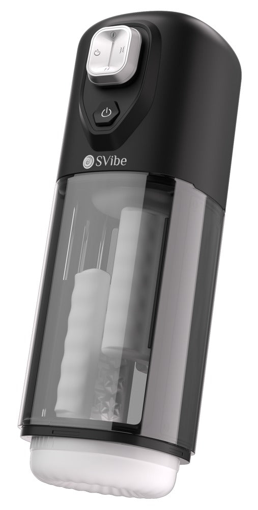 Handlicher IKON VOLT Masturbator von SVibe im handlichen diskreten Gehäuse. Mit kraftvoller Vibration in 9 Modi und intensiver Reibemassage in 6 Modi, die rundherum den Penis verwöhnen. Dazu die Wärmefunktion in 2 Stufen, um den Masturbator schnell auf die richtige Körper- und Betriebstemperatur zu bringen. Alles ist bequem per Knopfdruck steuerbar – auch der Full-Power-Modus für einen unvergesslichen Höhepunkt. Hochwertige Materialien und die einfache Reinigung sorgen zusätzlich für vollen Komfort.
