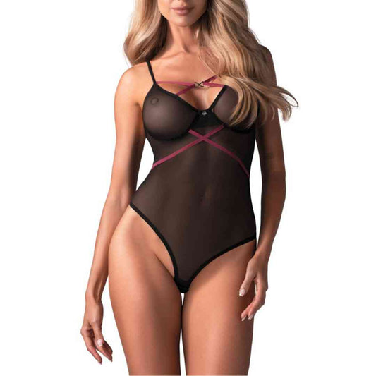 Netz-Body ouvert in Bondage-Bänder-Optik