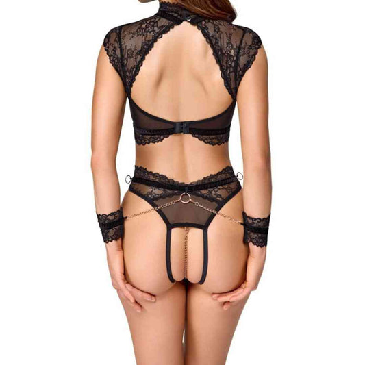 Strapsbody ouvert im Mattlook mit Spitze plus Armfesseln