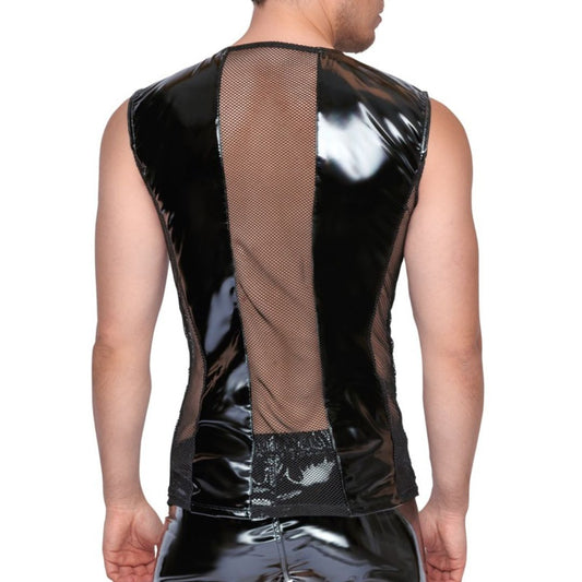 Ärmelloses Shirt aus bi-elastischem Lack und Netz