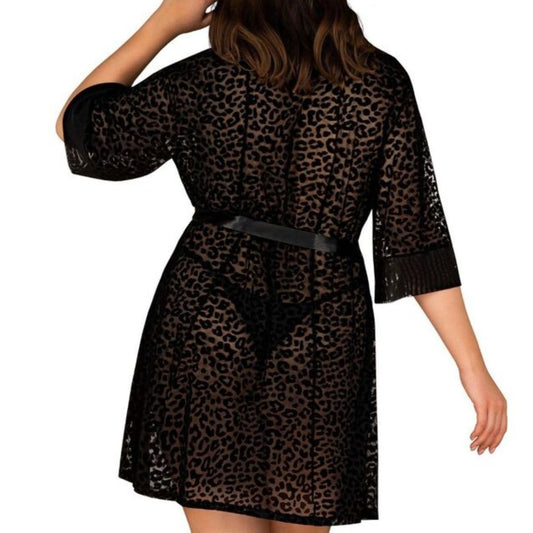 Kurzer Peignoir aus Spitze mit Samt-Leoparden-Print-Muster