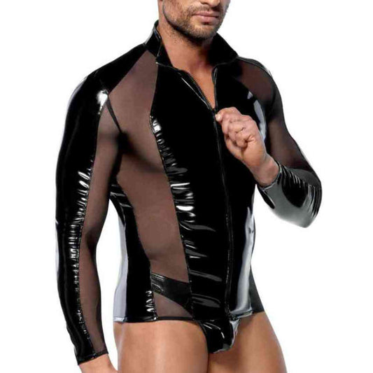 Langarm-Shirt aus Lack mit Netz-Einsätzen