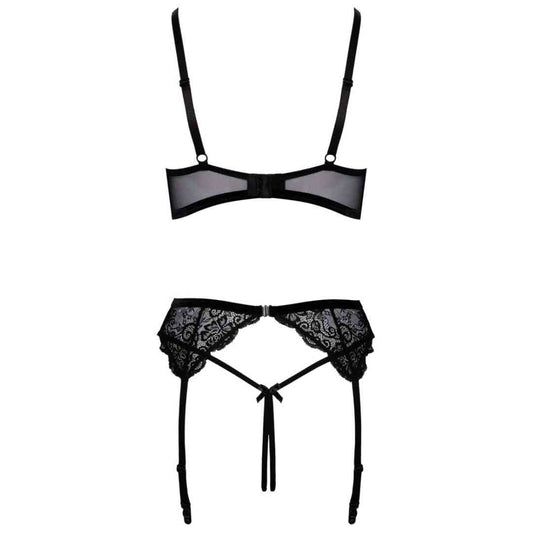 Balconette-BH im Wetlook mit Spitze plus Strapsgürtel und Tanga