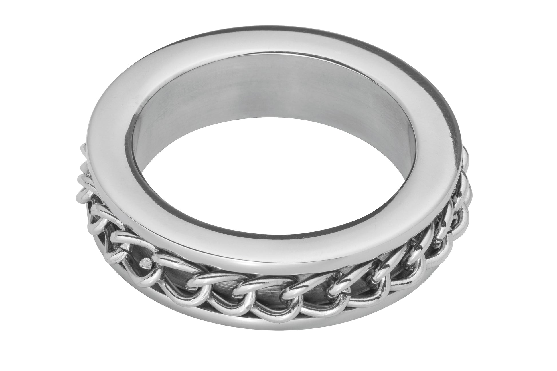 Penisring, der eine länger anhaltende und stärkere Erektion unterstützen kann. Material: Edelstahl (410), Oberfläche mit Gliederkette, Außen-Ø: ca. 6,00 cm, Innen-Ø: ca. 4,50 cm, Materialstärke: ca. 0,80 x 1,50 cm, Gewicht: 140 g. Ein Satinbeutel für die Aufbewahrung ist enthalten.