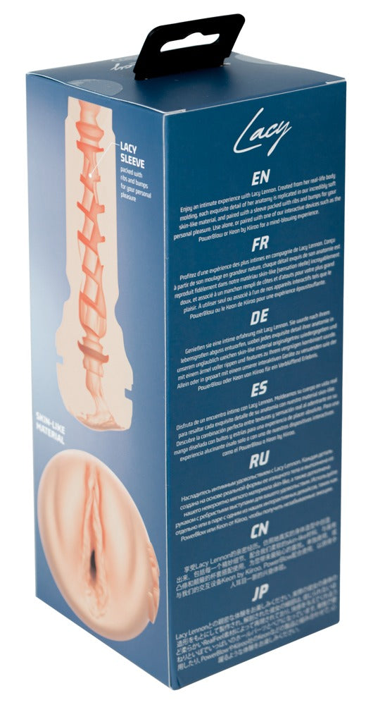 Masturbator Feel Lacy Lennon von Kiiroo mit original abgeformter Vulva von Erotikstar Lacy Lennon. Und auch das sehr abwechslungsreich strukturierte Innenleben kommt der Vagina von Lacy ganz nah und sorgt für eine intensive Massage beim Handjob. Die Innensleeve aus hautähnlichem Softmaterial ist neben den Vulvalippen sogar mit dem Autogramm von Lacy signiert. Die Sleeve lässt sich zur Reinigung leicht aus dem griffigen, diskreten Gehäuse entnehmen.