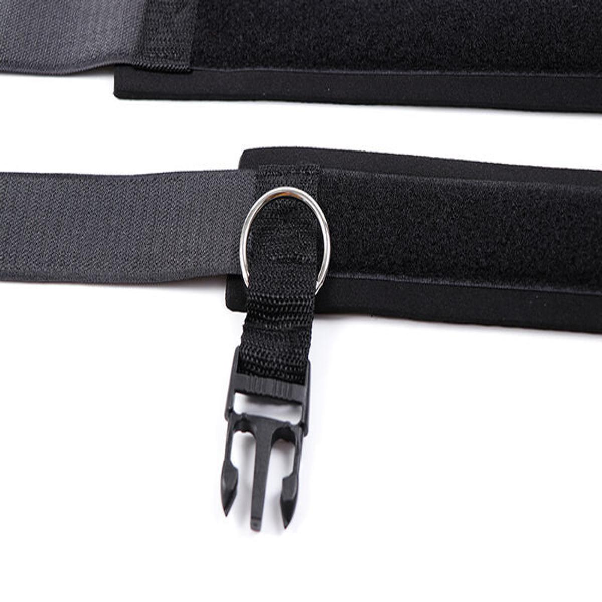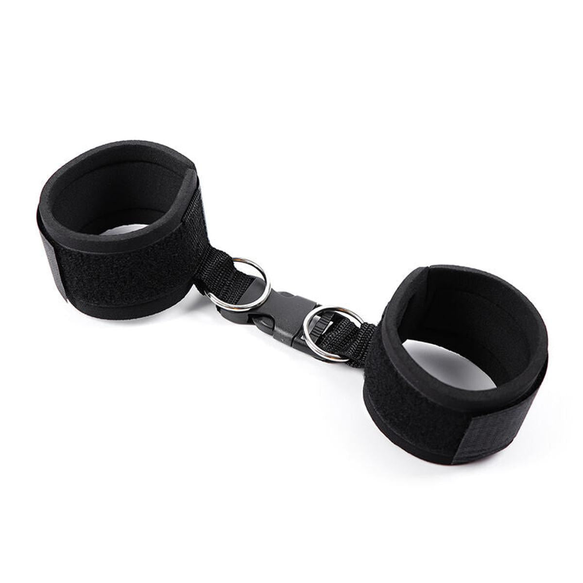 - Mit Haken- und Ösenverschluss zwischen den Fesseln